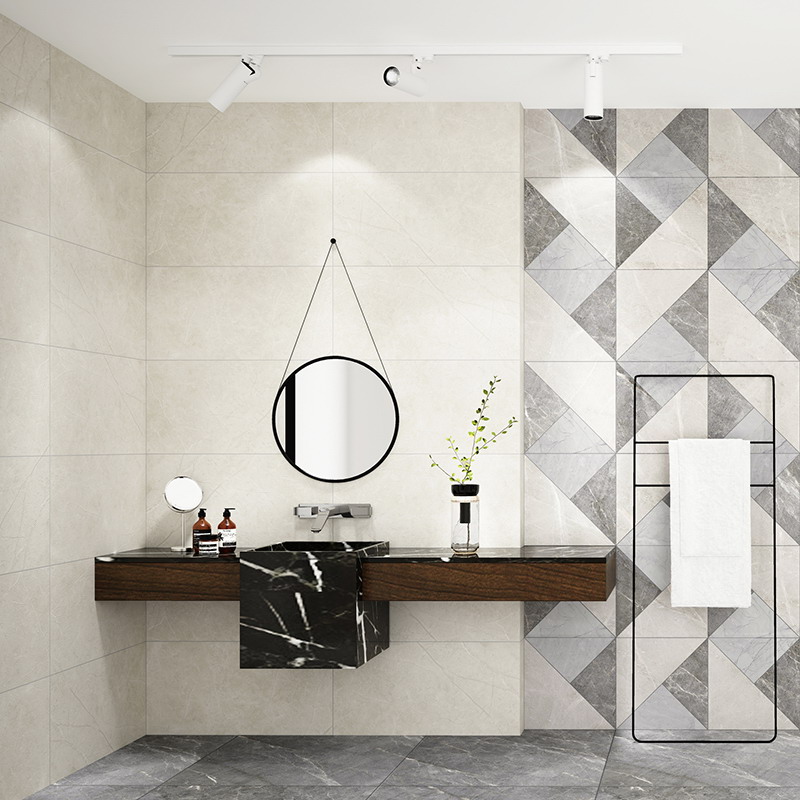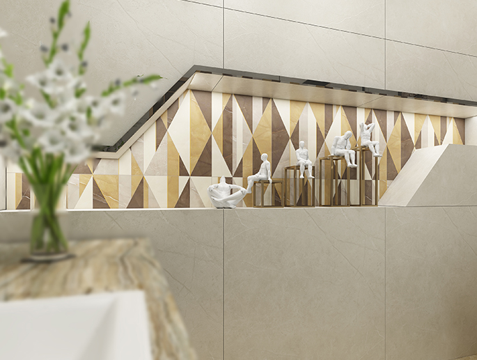 金白交融的磚麵上,流轉著輕盈飄逸的花紋,優雅的色調,